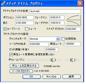 ⑦「メディア アイテム プロパティー」の中のポジションを0:02.000から0:02.066に変更しOKを押します。