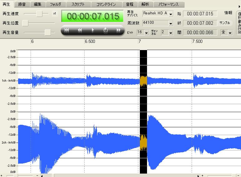 ③これをSoundEngine Freeで録音して波形を見てみます。