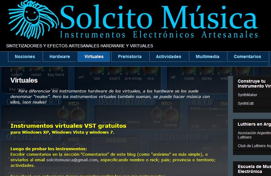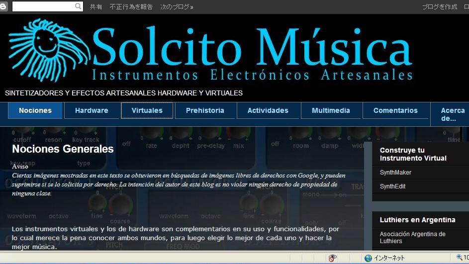 ②「Solcito Musica」サイト名の下の段、中央あたりの「Virtuales」を押します。